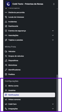 R: A Central de Notificações controla notificações de alertas especificamente. Outras notificações do sistema (mensagens da Cobli, atualizações de software, convites, etc.) podem ter configurações separadas.