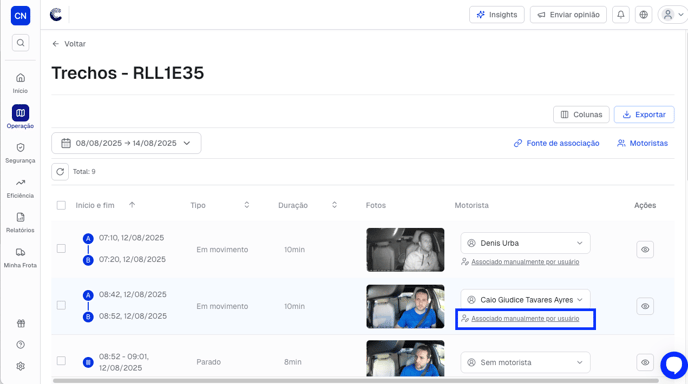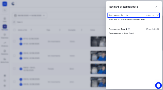 3. Pronto, a associação do motorista já foi alterada no trecho. O histórico de associações de motoristas a esse trecho pode ser acessado com data, hora e usuário que realizou a mudança para os casos em que o método de associação foi manualmente realizado por um usuário do painel.