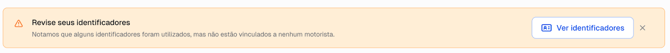 Significa que um cartão RFID ou um chaveiro foram utilizados em um veículo, mas não há nenhum motorista associado a ele na plataforma. Isso pode acontecer quando o motorista ainda não foi vinculado ao cartão. Cliquem em Ver identificadores para fazer as correções.