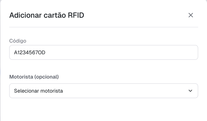 Revise as informações e clique em "Salvar" ou "Confirmar". O sistema validará o código RFID e associará o cartão ao motorista selecionado. A partir deste momento, o cartão já está ativo.